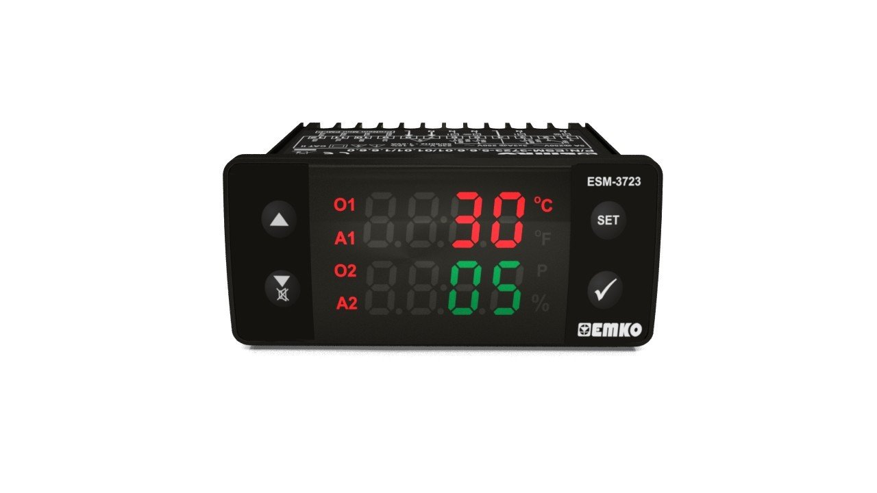 Temperature & Humidity Control ESM-3723 is a compact digital controller designed for accurate temperature and humidity control in industrial and commercial environments. It offers independent outputs for heating and humidity control, ensuring stable climate management.